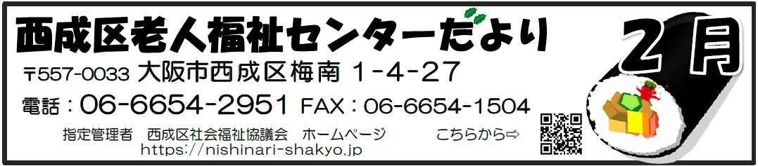 お知らせ 新着 お知らせ 募集 お知らせ2026年01月29日 西成区老人福祉センターだより2月号を掲載します。 西成区老人福祉センターだより2月号 西成区老人福祉センターだより2月号を掲載いたします。ご覧ください。 西成区老人福祉センターだより2月号 老センだより2月号.pdf