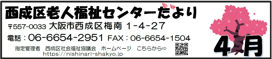お知らせ 新着 お知らせ 募集 お知らせ2026年03月30日 西成区老人福祉センターだより4月号を掲載します。 西成区老人福祉センターだより4月号 西成区老人福祉センターだより4月号を掲載いたします。ご覧ください。 西成区老人福祉センターだより4月号 老センだより4月号.pdf