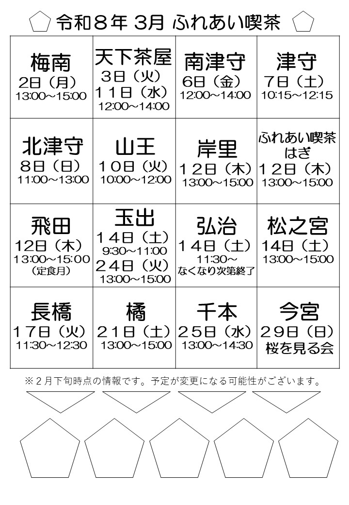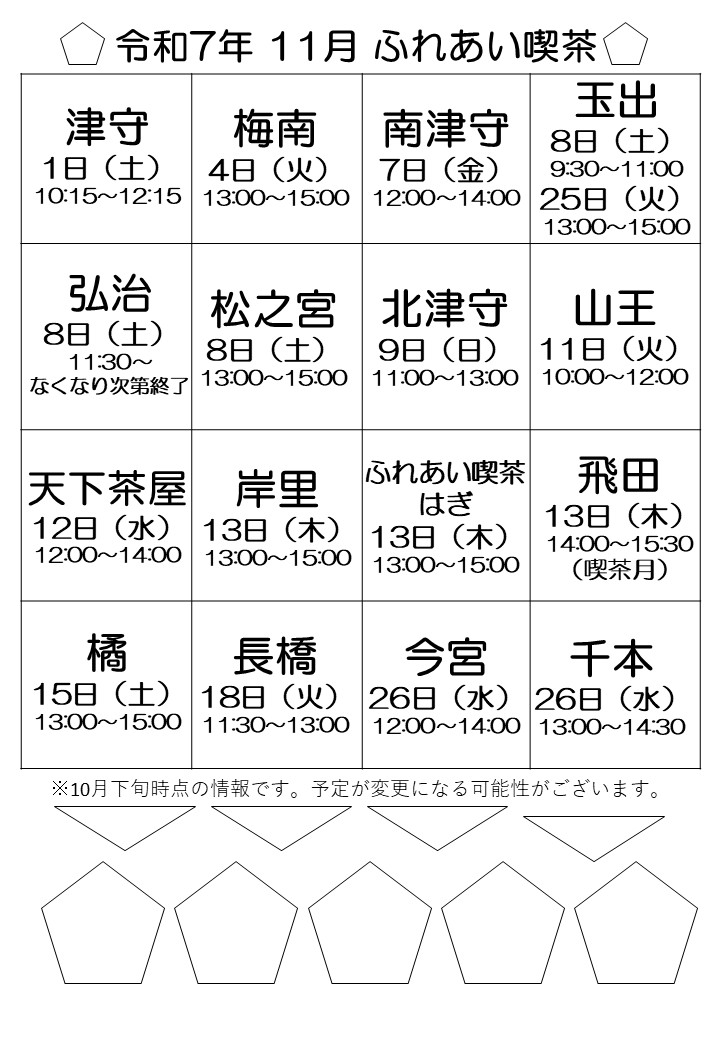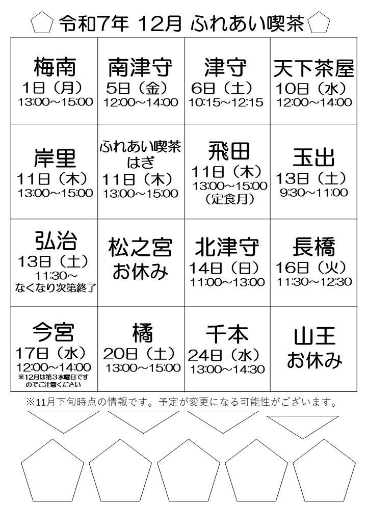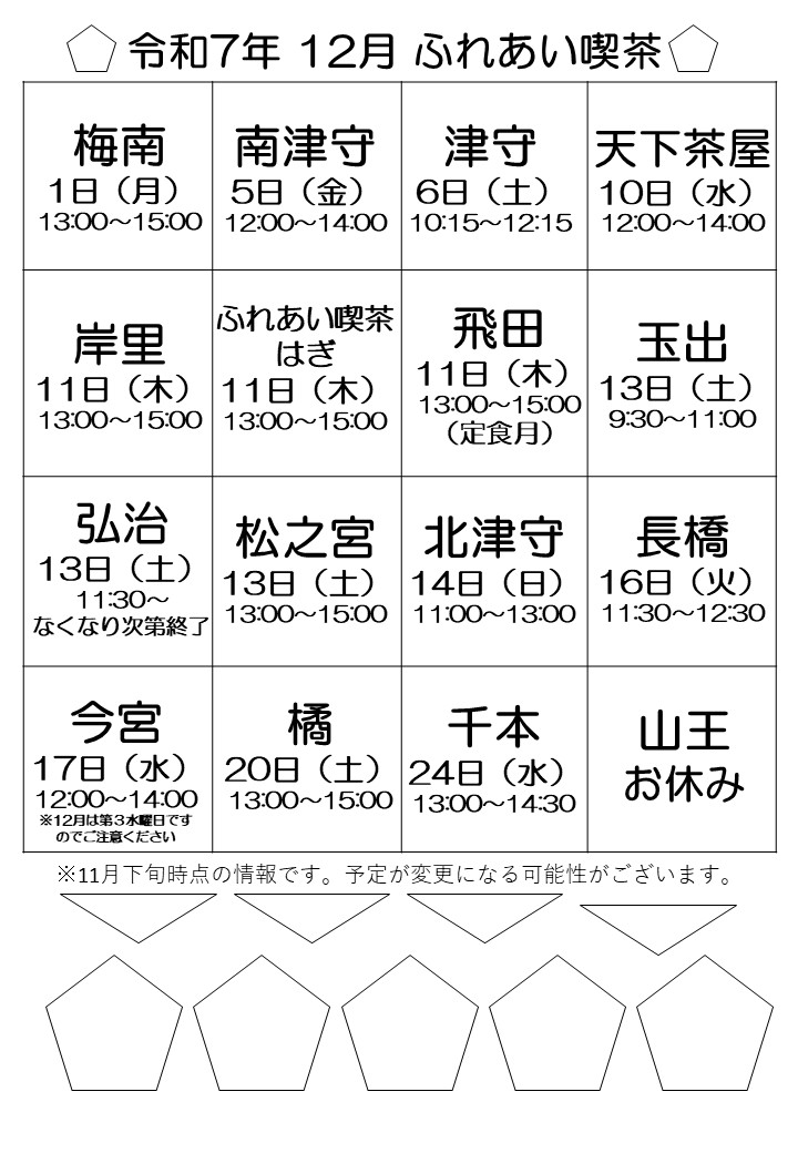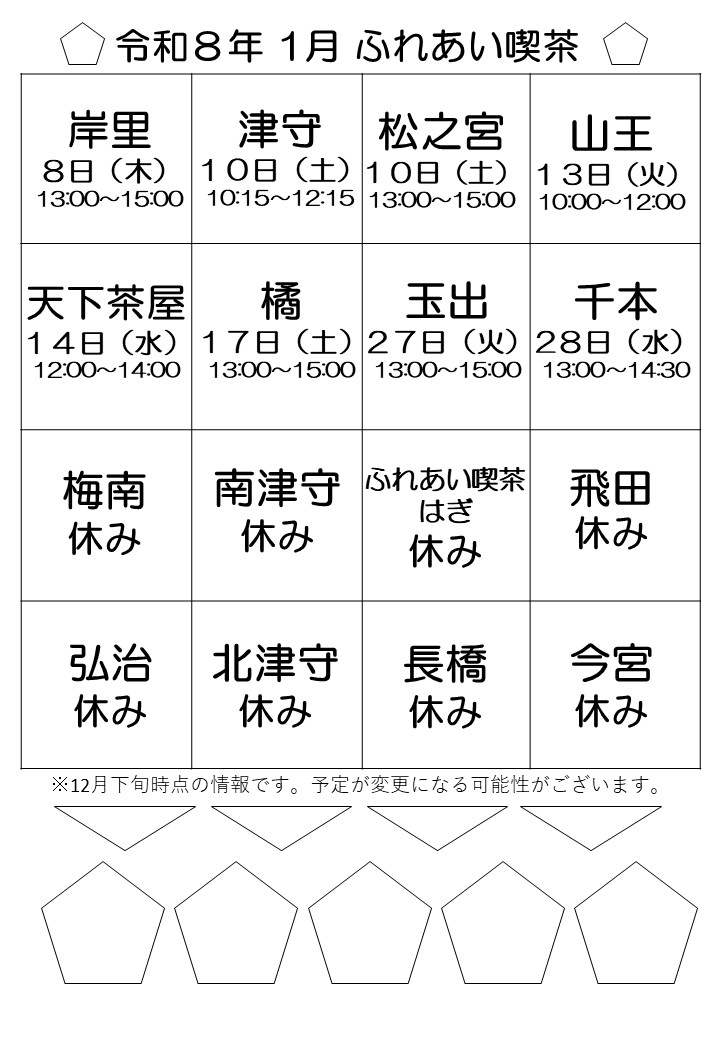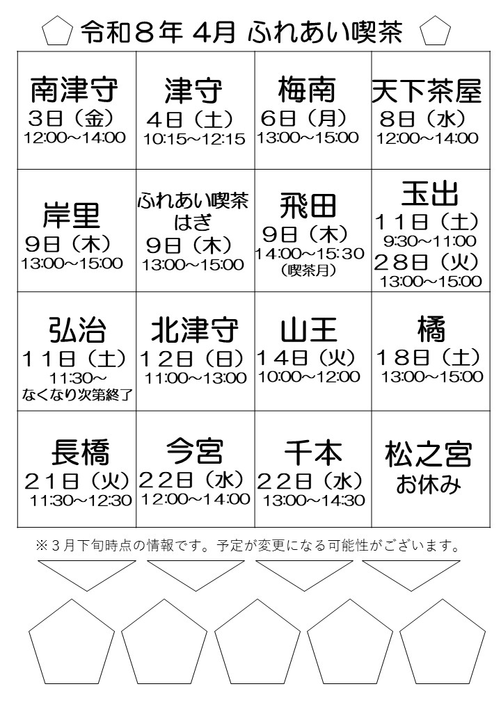 ふれあい喫茶は、ボランティアのみなさんによって、地域の人たちの交流の場として開かれた喫茶であり、一般的な喫茶店ではありません。